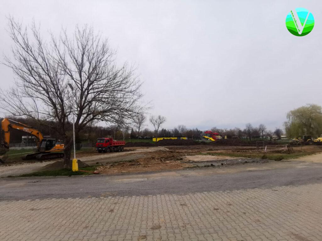 Na Kurinci v súčasnosti prebiehajú prípravné práce k výstavbe bazénu s vlnobitím. Ornica na trávnatej ploche je odstránená a odvezená. Na tomto mieste má stáť bazén s pitnou vodou a atypickými rozmermi. Pracovníci TSM pokračujú v rozoberaní chodníka z dlažby, aby ju ťažké mechanizmy nepoškodili pri stavebných prácach. Chodník je rozobratý aj pri bazénoch a zrušený bol aj bufet.